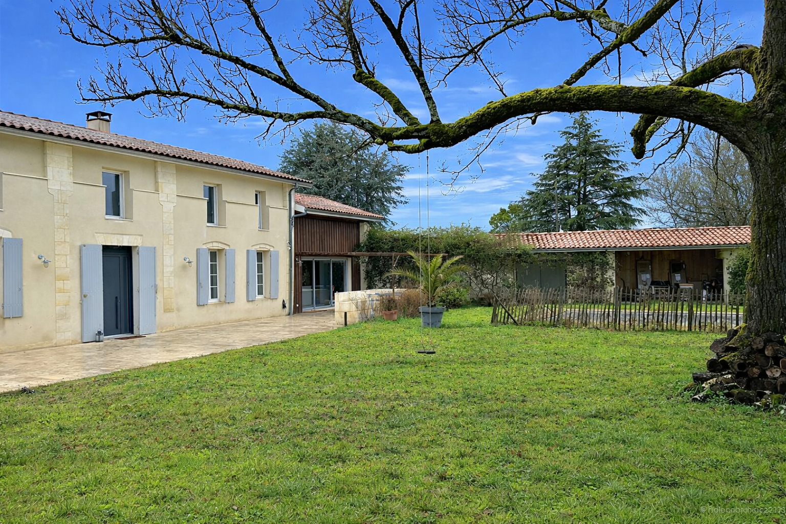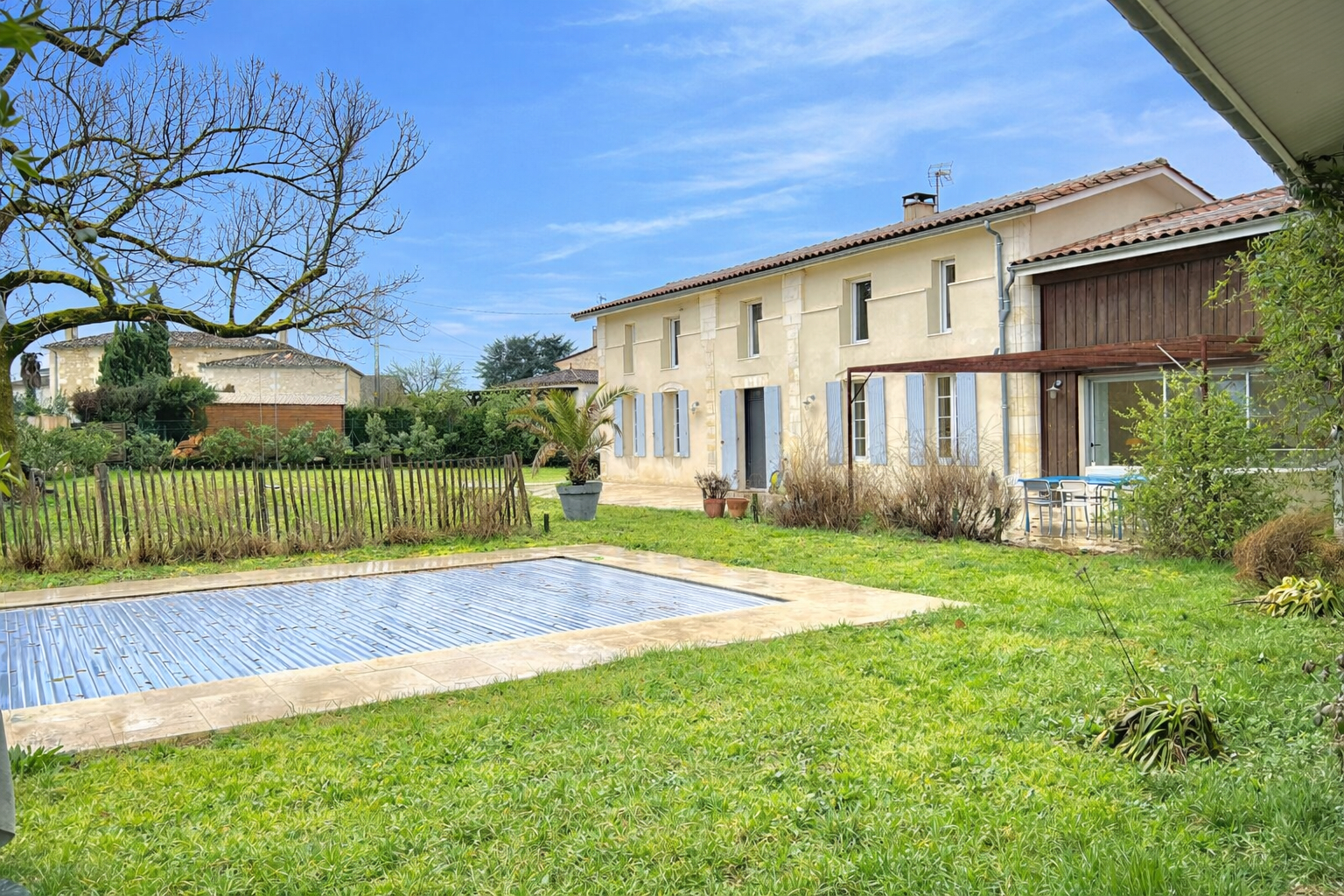 A l’extérieur, la propriété dispose d’une agréable terrasse pour les repas en plein air et les réceptions estivales, ainsi que d’un espace couvert avec vue sur la piscine. Le terrain offre également un bel espace pour un potager, un stationnement généreux, et est entièrement clos, garantissant calme et intimité. Malgré son environnement paisible, la maison bénéficie d’un emplacement privilégié à seulement 15 minutes de Libourne. (4.17 % honoraires TTC à la charge de l’acquéreur.)