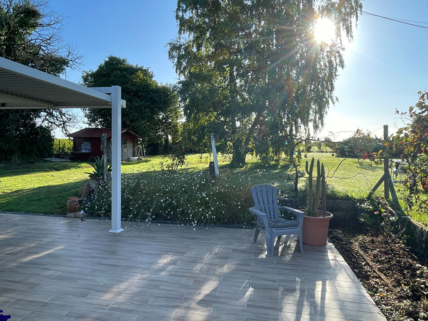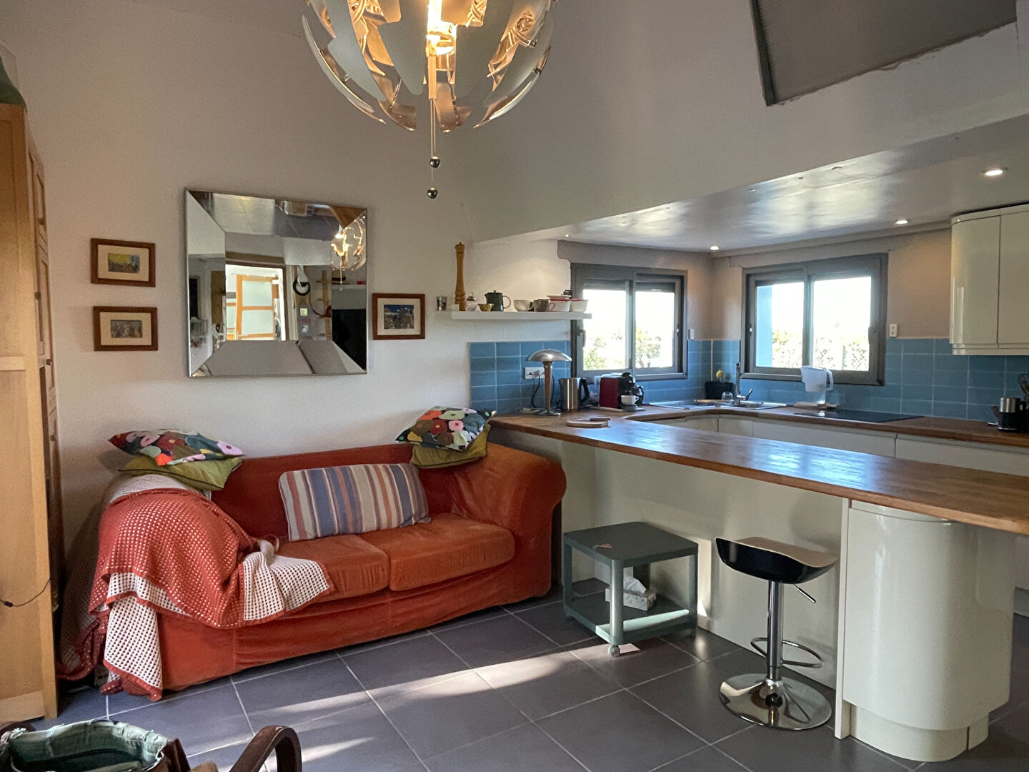 La maison offre un salon de belle taille avec une cuisine moderne ouverte, ainsi qu’un petit espace buanderie. La grande chambre dispose de sa propre salle d’eau attenante. Le séjour et la chambre s’ouvrent tous deux sur une vaste terrasse partiellement couverte, idéale pour profiter du joli jardin entièrement clôturé. (6.71 % honoraires TTC à la charge de l’acquéreur.)